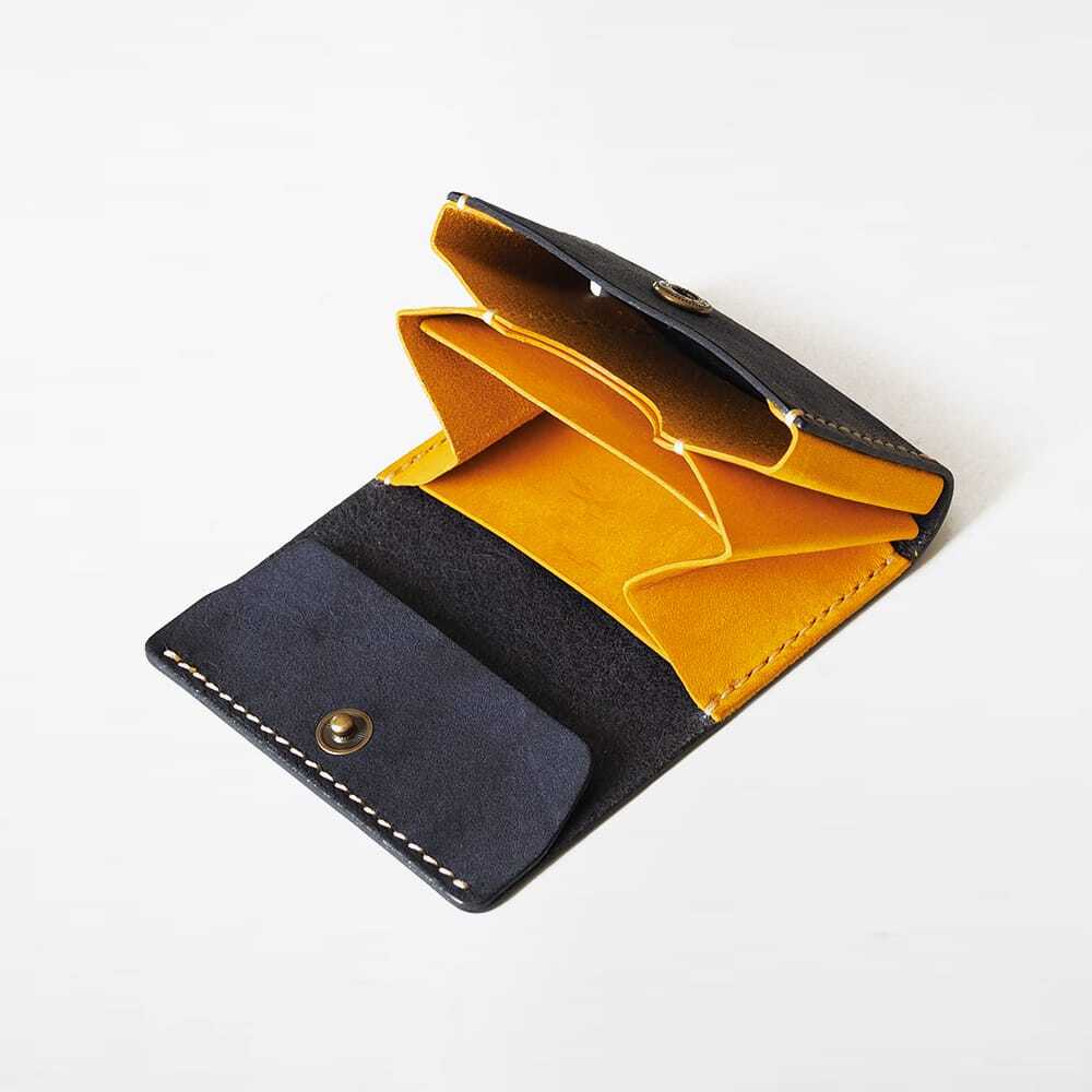 お札は5枚程度、小銭10枚程度が入るシンプルな形。ちょっとしたお出かけ時に必要最小限の現金を持つ方にも最適です。カードを中心に使うライフスタイルの方々へぜひ使って欲しい、使い勝手の良い便利なアイテムです。