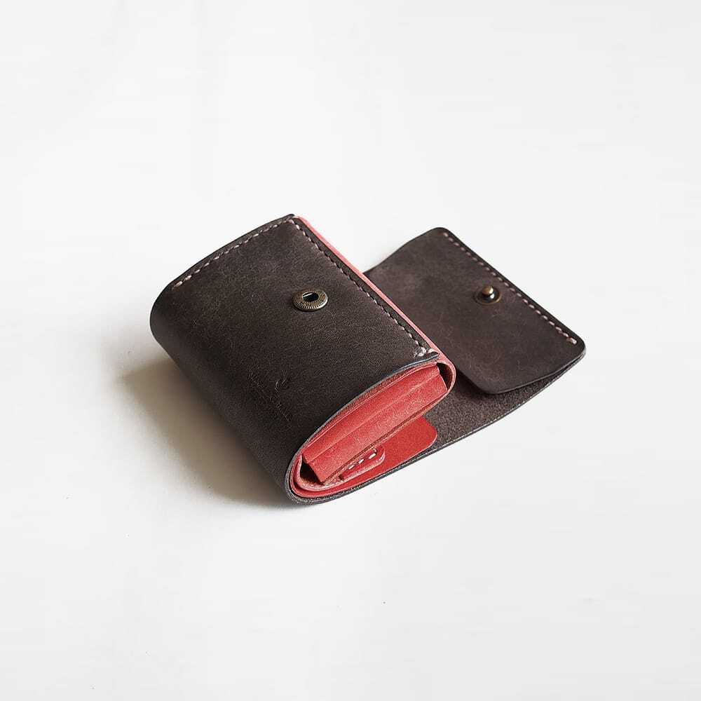 必要最低限のスッキリした暮らしをするために作った三つ折り財布です。常に携帯する財布が小さくなる事で荷物の軽量化にも繋がり、小さいバッグやポケットに入れられるので、お出かけの際も邪魔になりません。