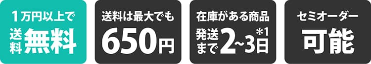 ■セミオーダー品および受注生産品は発送まで2〜3週間程度かかる場合がございます。