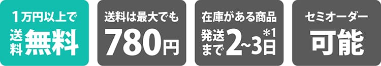 ■セミオーダー品および受注生産品は発送まで2〜3週間程度かかる場合がございます。