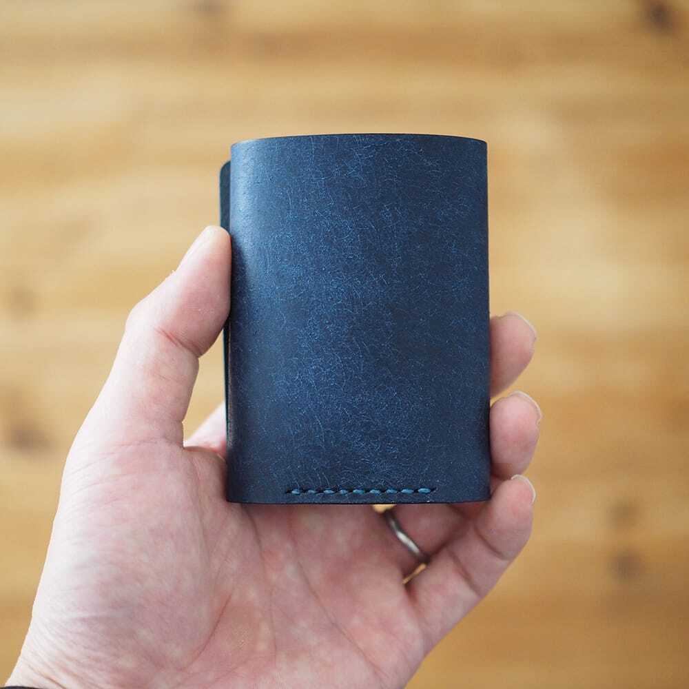 タンニンなめしのイタリアンレザーを使用し、「小さいのにお札を折らずに入れられる」ミニ財布です。